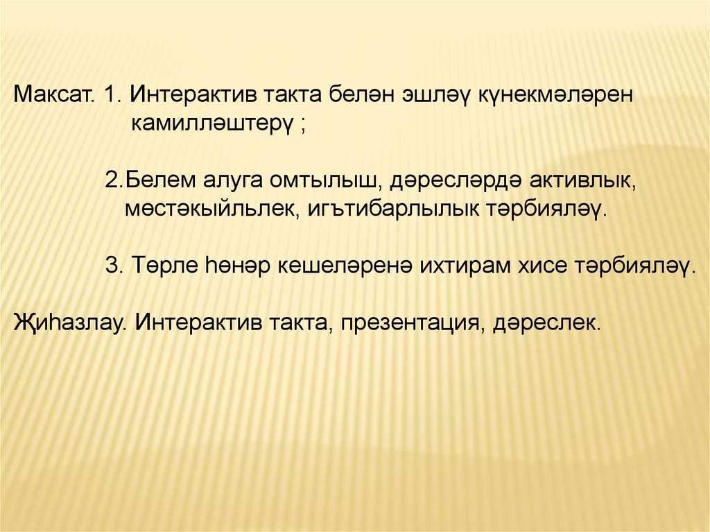 Җиһазлау. Интерактив такта, презентация, дәреслек.
