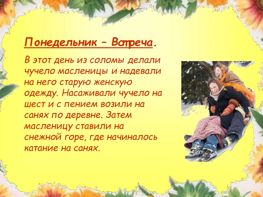 Понедельник – Вст реча.В этот день из соломы делали