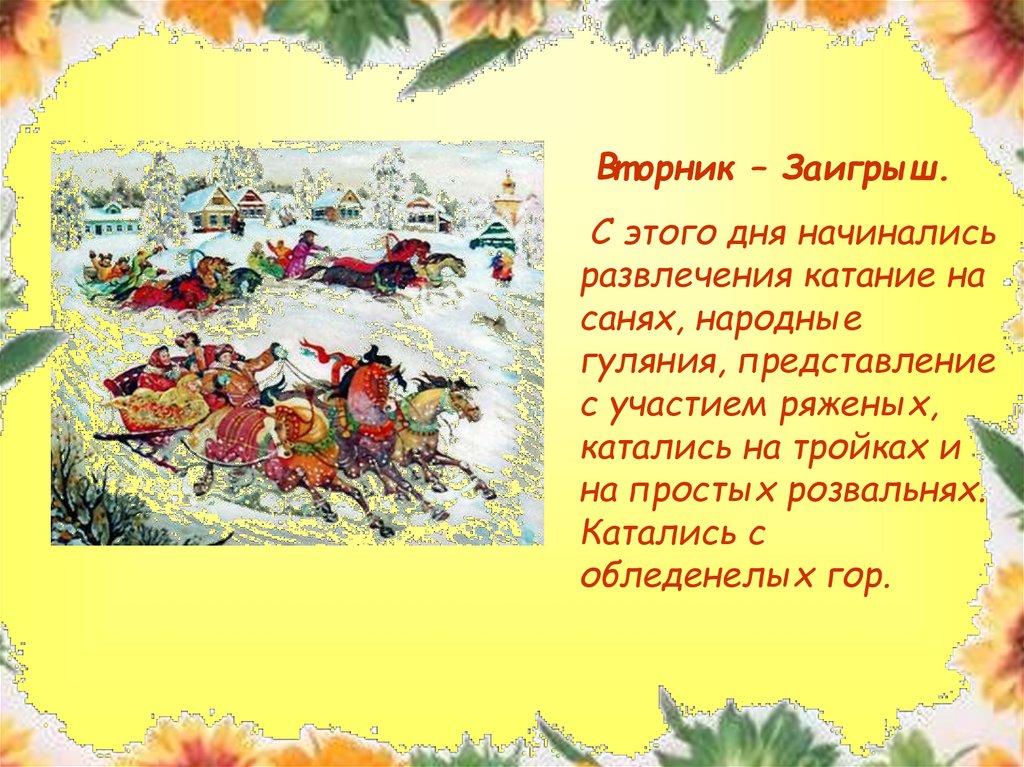 Вт орник – Заигрыш.С этого дня начинались