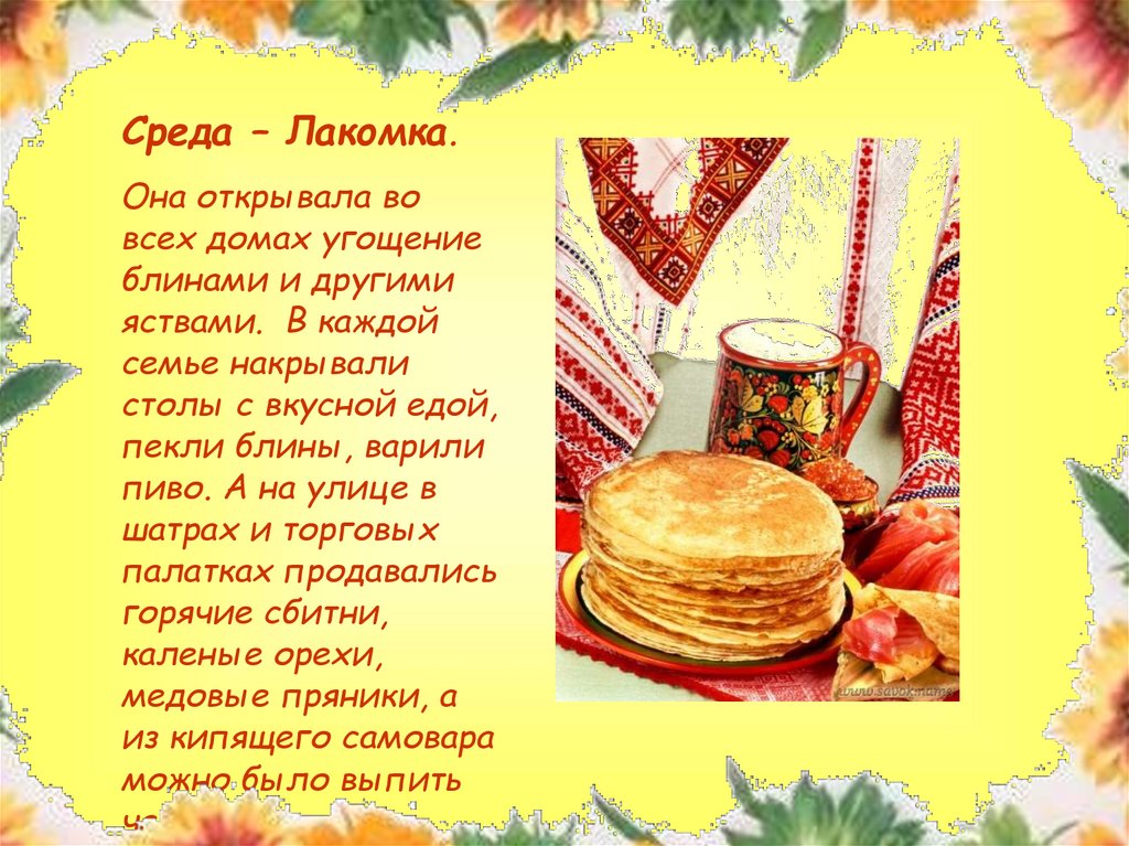 Среда – Лакомка.Она открывала во