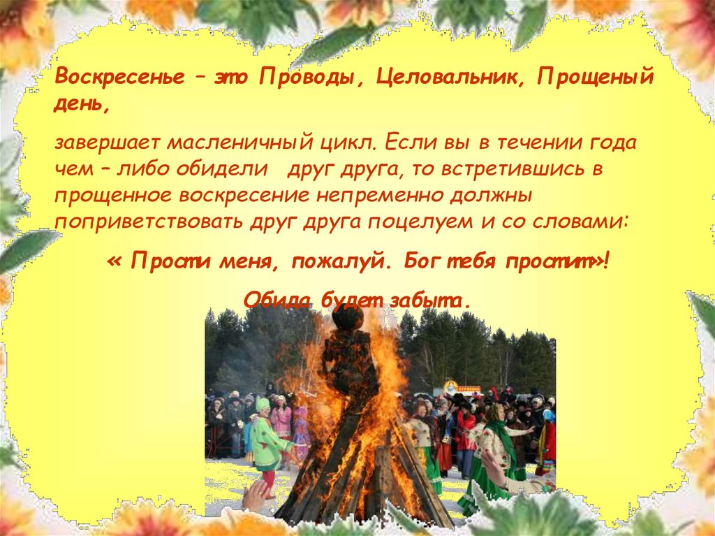 Воскресенье – эт о Проводы, Целовальник, Прощеныйдень,