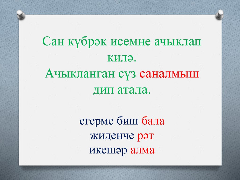 Сан күбрәк исемне ачыклапкилә.