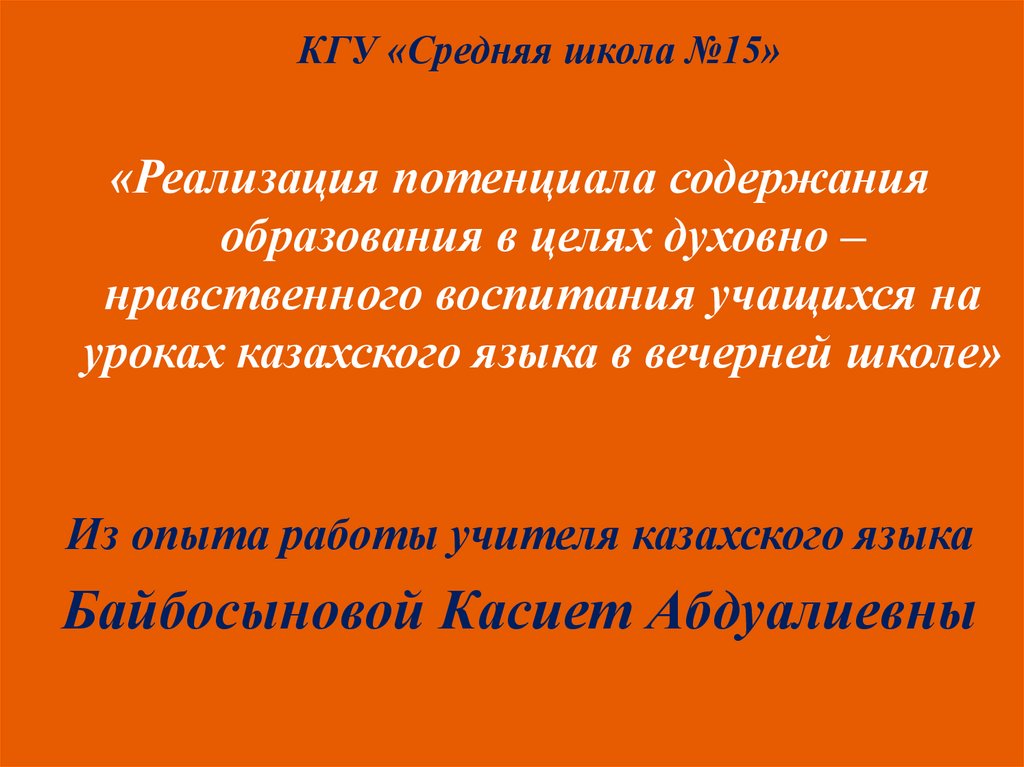 КГУ «Средняя школа №15»«Реализация потенциала содержания