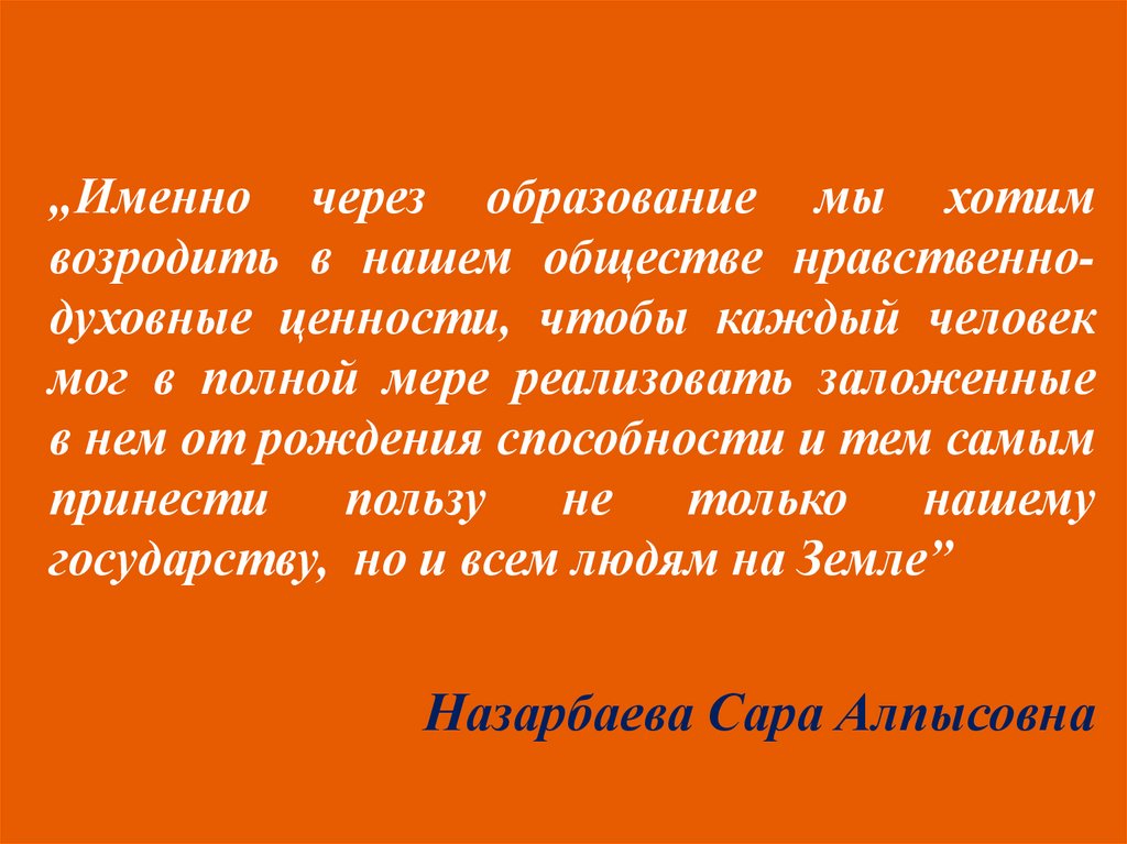 „Именно через образование мы хотимвозродить в нашем обществе нравственнодуховные ценности, чтобы каждый человек