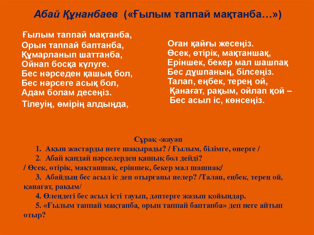 Абай Құнанбаев («Ғылым таппай мақтанба…»)Ғылым таппай мақтанба,