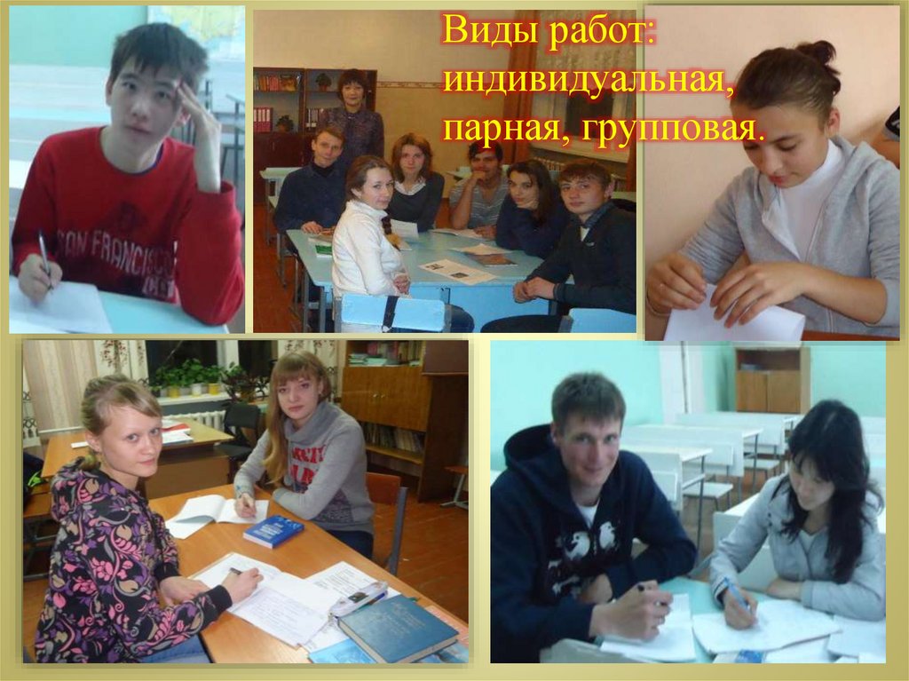 Виды работ:индивидуальная,