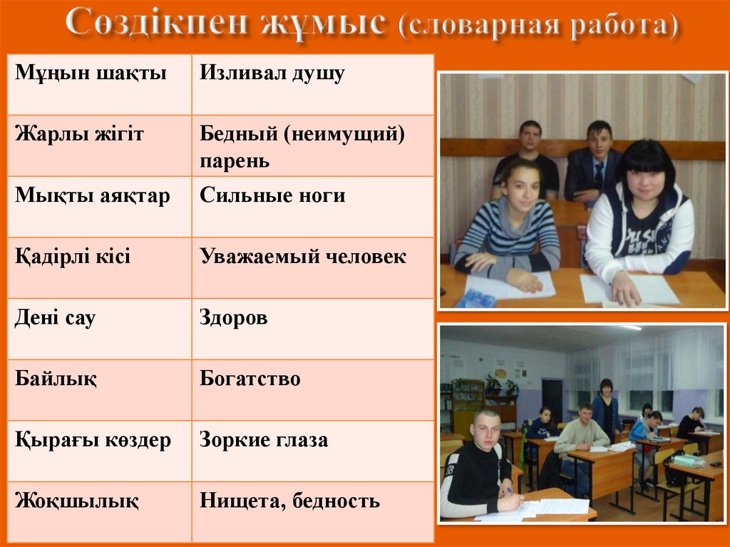 уроках казахского языка в вечерней школе»