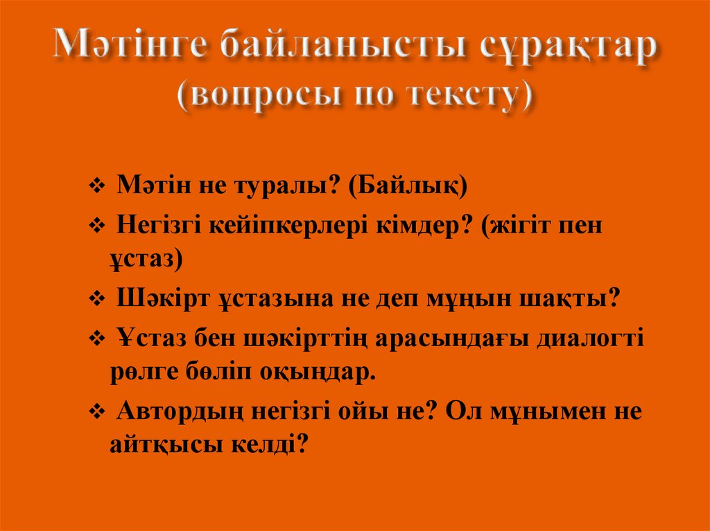 Сұрақтарға жауап беріңдер (Ответьте на вопросы):