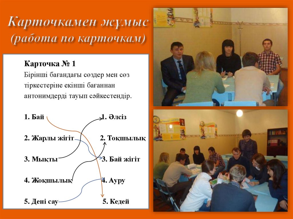 Карточка № 1Бірінші бағандағы сөздер мен сөз