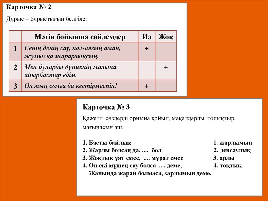 Карточка № 2Дұрыс – бұрыстығын белгіле: