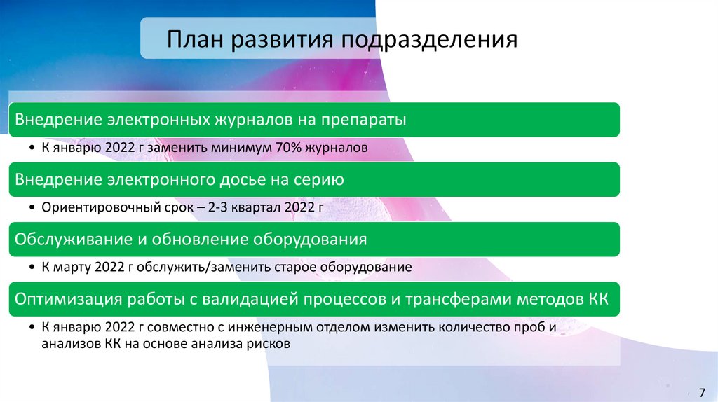 • К январю 2022 г совместно с инженерным отделом изменить количество проб и