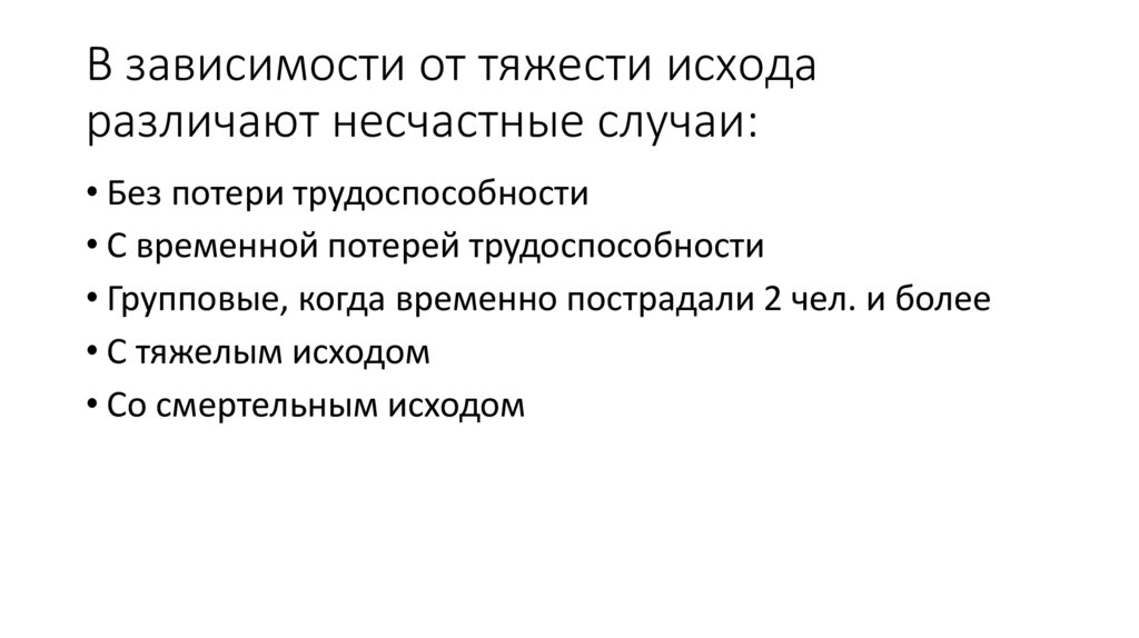 В зависимости от тяжести исходаразличают несчастные случаи: