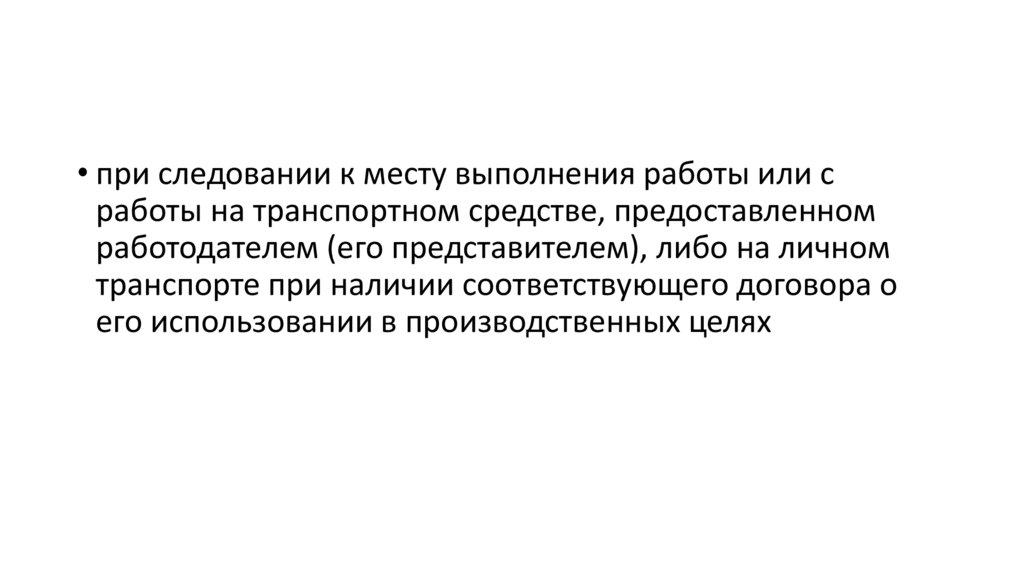 • при следовании к месту выполнения работы или сработы на транспортном средстве, предоставленном
