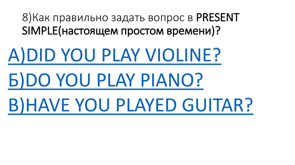 8)Как правильно задать вопрос в PRESENTSIMPLE(настоящем простом времени)?
