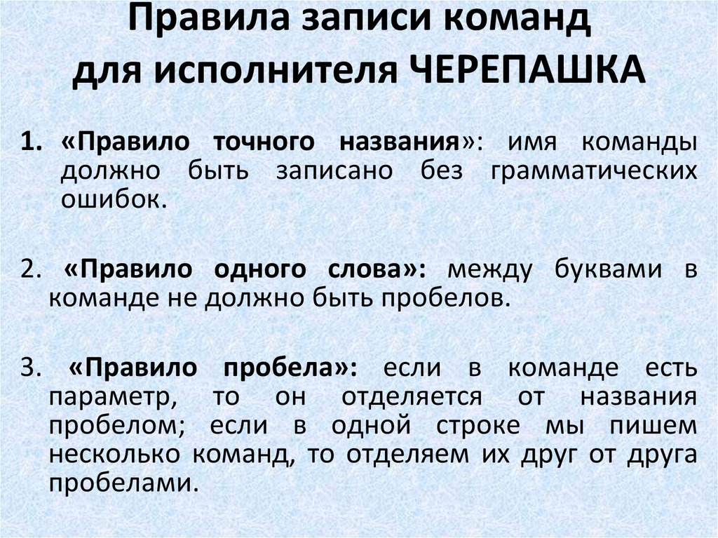 Правила записи команддля исполнителя ЧЕРЕПАШКА
