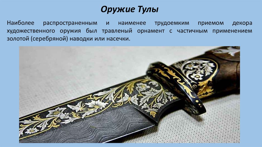 Оружие ТулыНаиболее распространенным и наименее трудоемким приемом декора