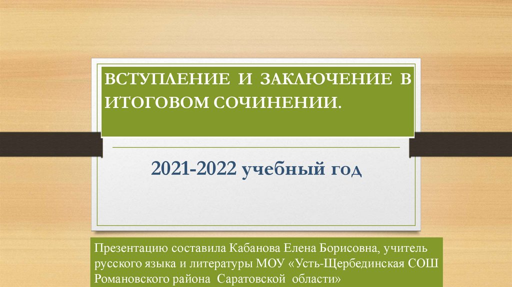 ВСТУПЛЕНИЕ И ЗАКЛЮЧЕНИЕ ВИТОГОВОМ СОЧИНЕНИИ.