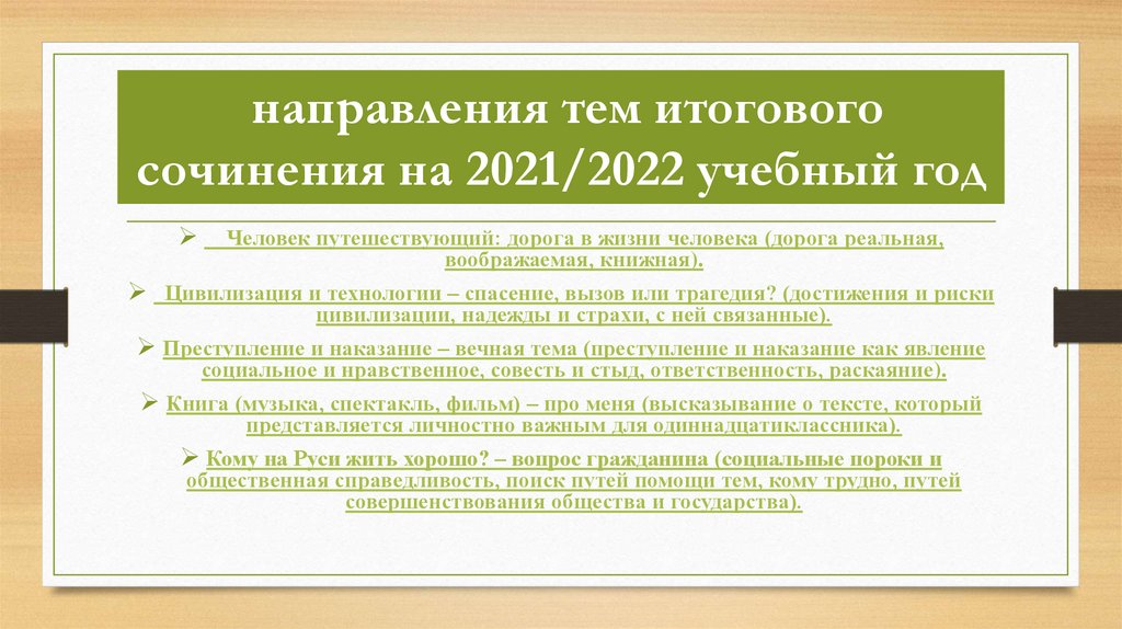 направления тем итоговогосочинения на 2021/2022 учебный год