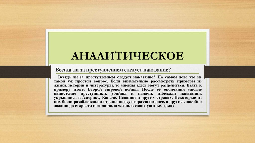 АНАЛИТИЧЕСКОЕВсегда ли за преступлением следует наказание?