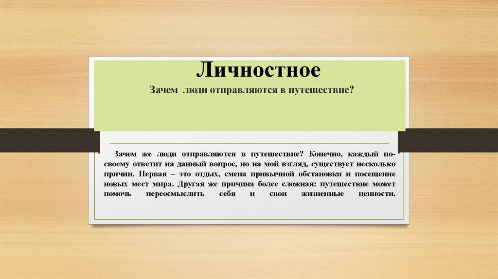 ЛичностноеЗачем люди отправляются в путешествие?