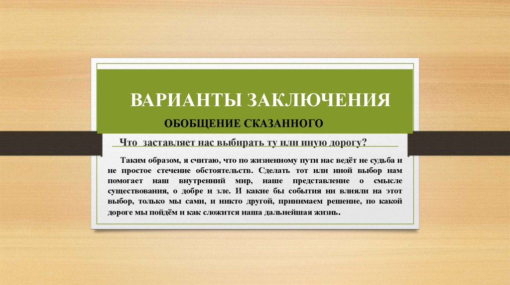 ВАРИАНТЫ ЗАКЛЮЧЕНИЯОБОБЩЕНИЕ СКАЗАННОГО
