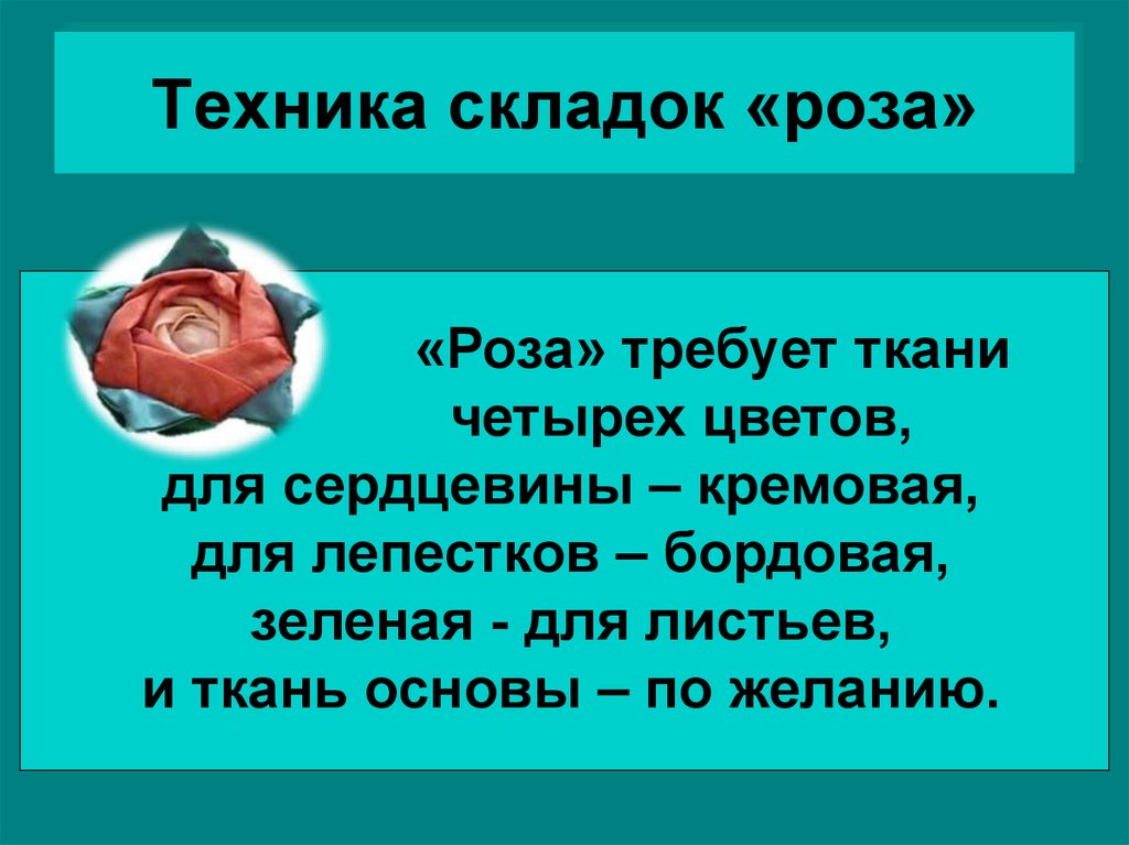 Техника складок «роза»Автор презентации : Фролова Ирина