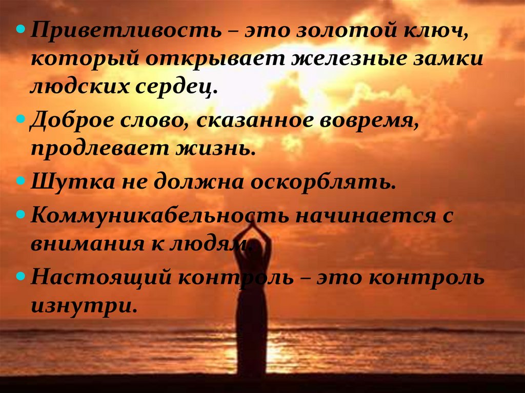Приветливость – это золотой ключ,который открывает железные замки