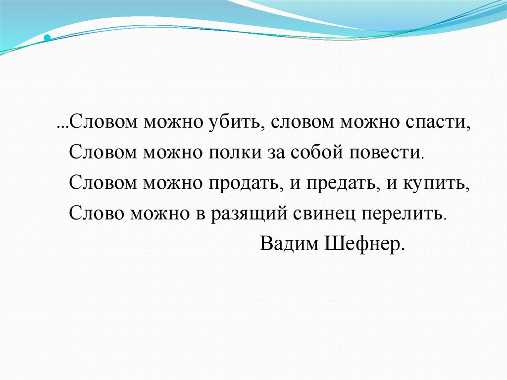 …Словом можно убить, словом можно спасти,Словом можно полки за собой повести.