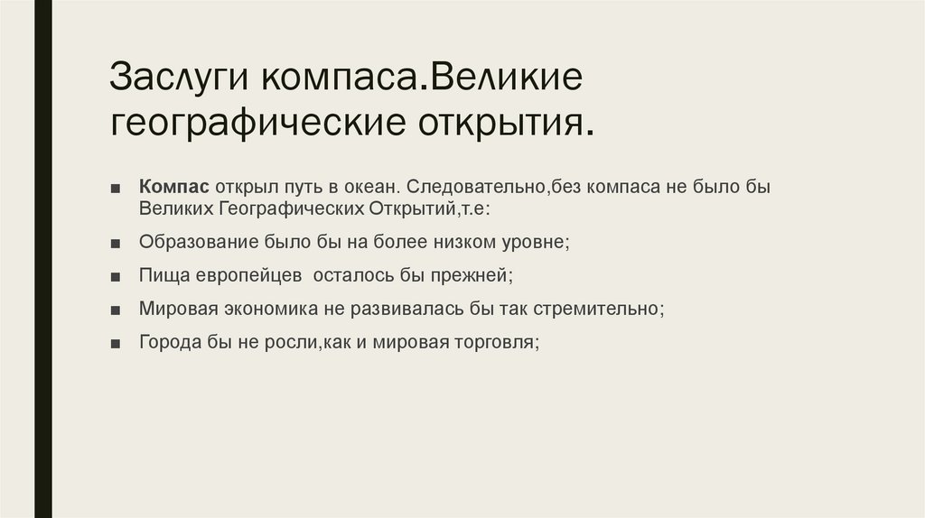 Заслуги компаса.Великиегеографические открытия.