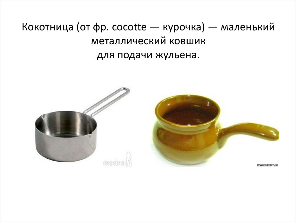 Кокотница (от фр. cocotte — курочка) — маленькийметаллический ковшик