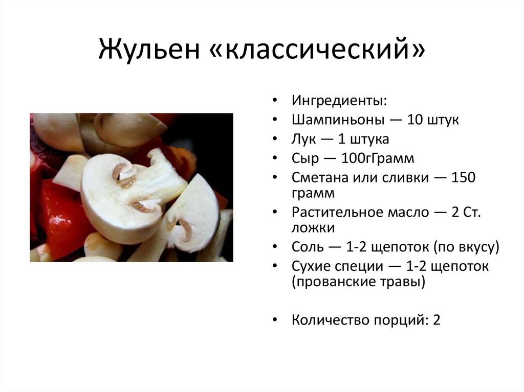 Жульен «классический»Ингредиенты: