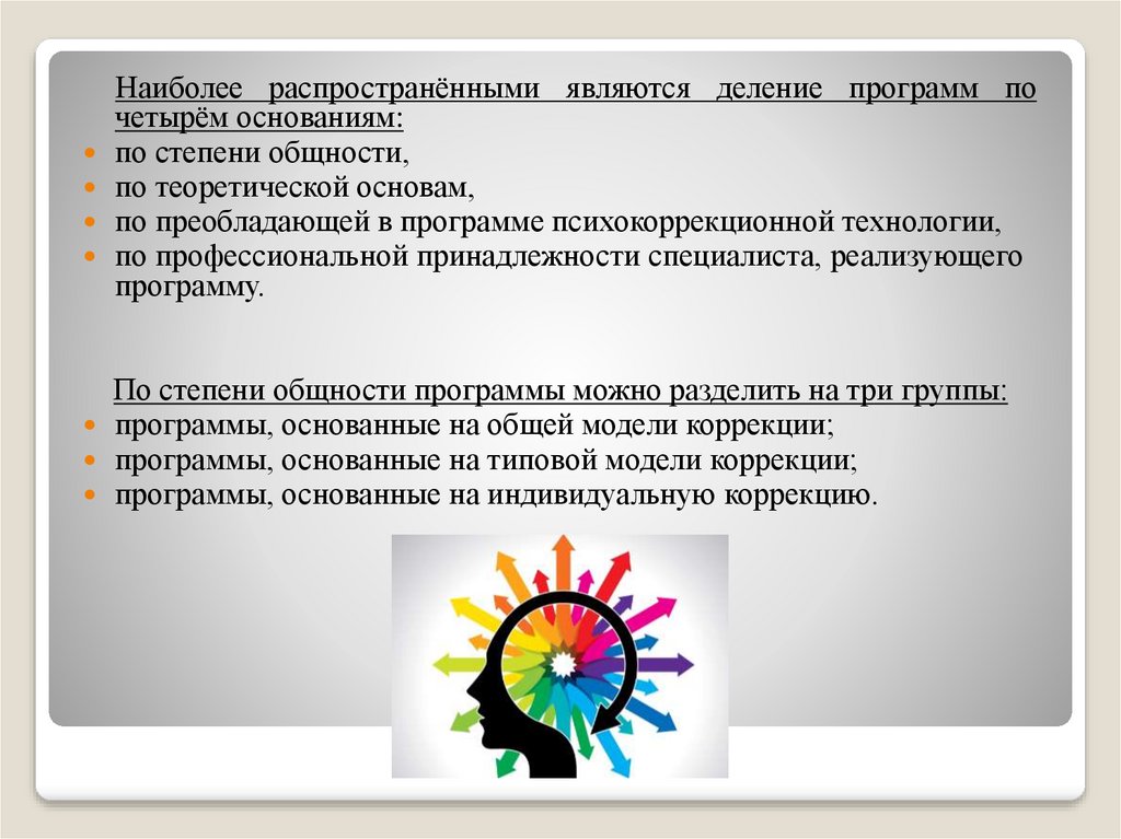 Наиболее распространёнными являются деление программ почетырём основаниям: