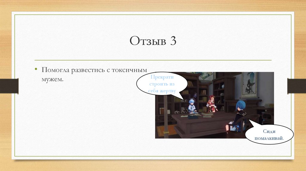 Отзыв 3• Помогла развестись с токсичным