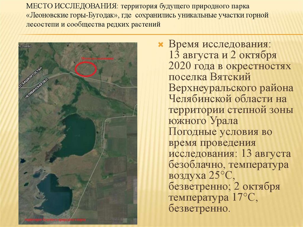 МЕСТО ИССЛЕДОВАНИЯ: территория будущего природного парка«Леоновские горы-Бугодак», где сохранились уникальные участки горной
