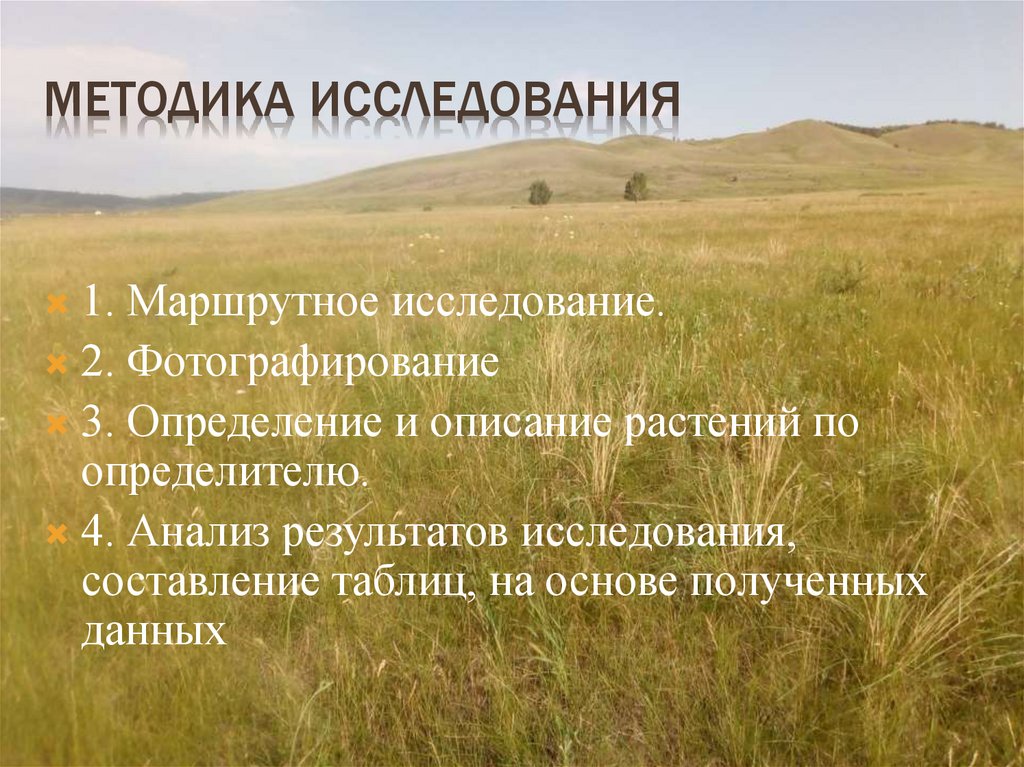МЕТОДИКА ИССЛЕДОВАНИЯ1. Маршрутное исследование.