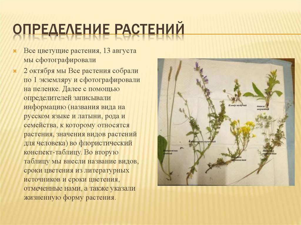 ОПРЕДЕЛЕНИЕ РАСТЕНИЙВсе цветущие растения, 13 августа