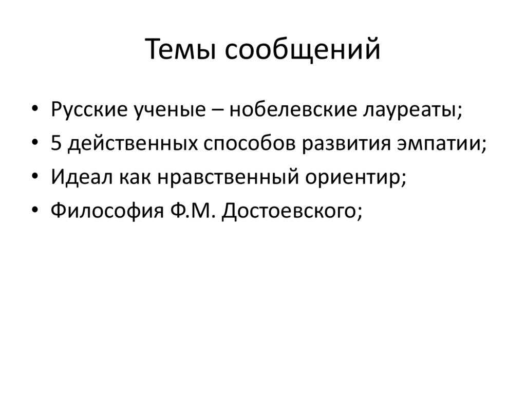 Темы сообщенийРусские ученые – нобелевские лауреаты;