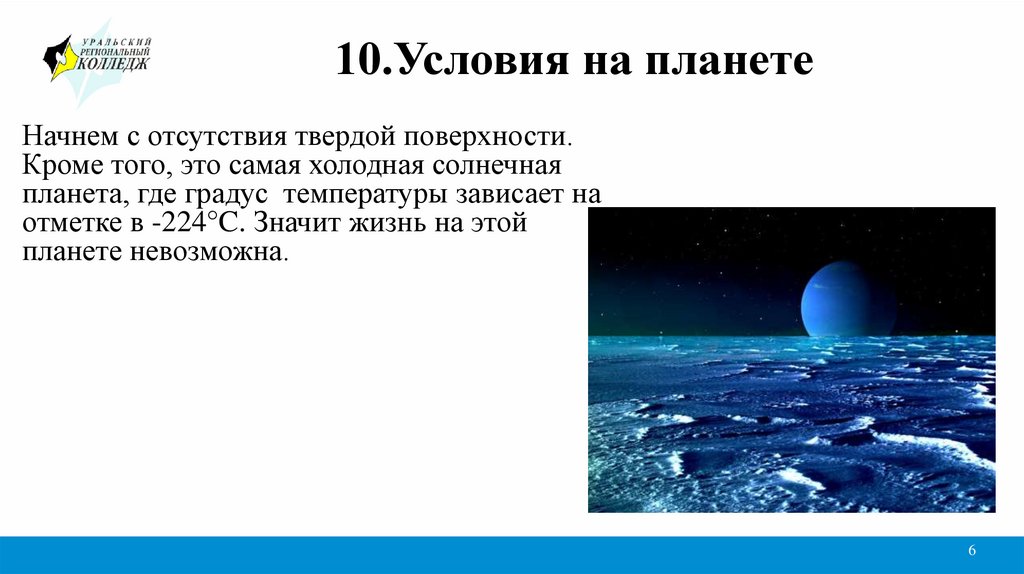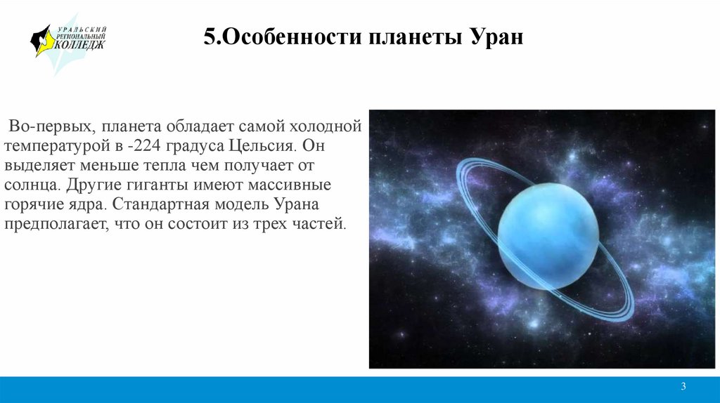5.Особенности планеты УранВо-первых, планета обладает самой холодной