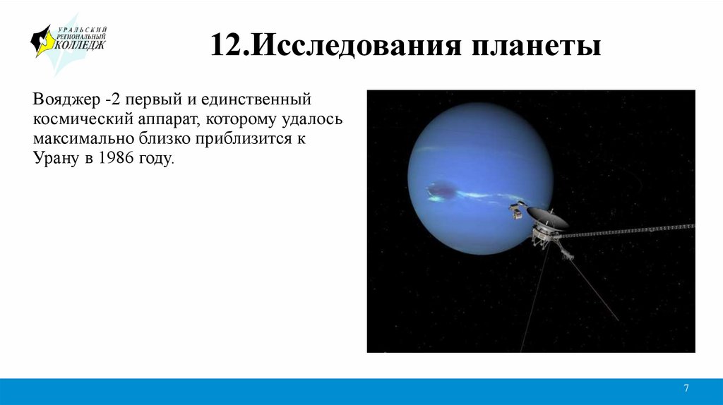 12.Исследования планетыВояджер -2 первый и единственный