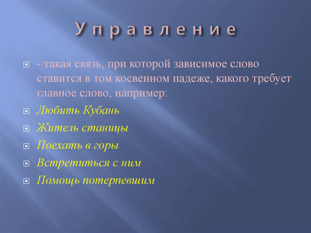 5. В каком словосочетании тип связи слов УПРАВЛЕНИЕ.