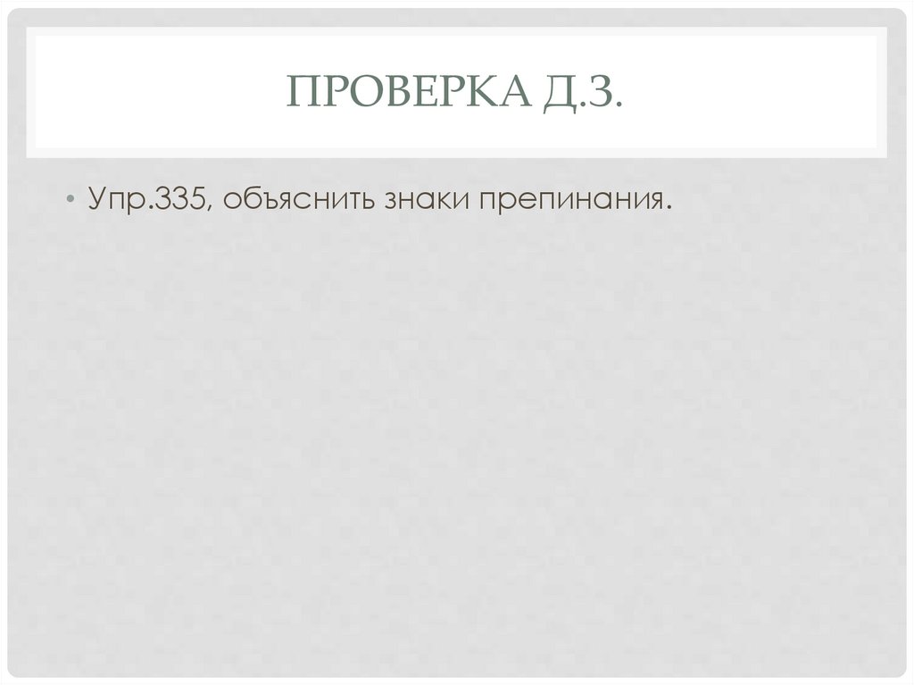ПРОВЕРКА Д.З.• Упр.335, объяснить знаки препинания.