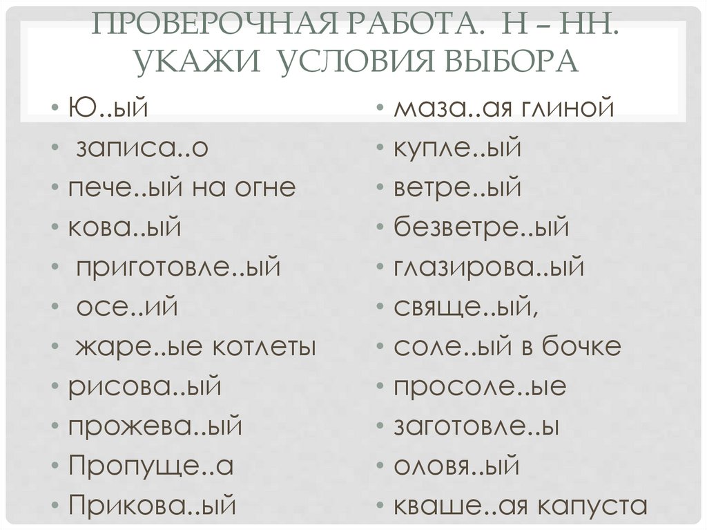 ПРОВЕРОЧНАЯ РАБОТА. Н – НН.УКАЖИ УСЛОВИЯ ВЫБОРА