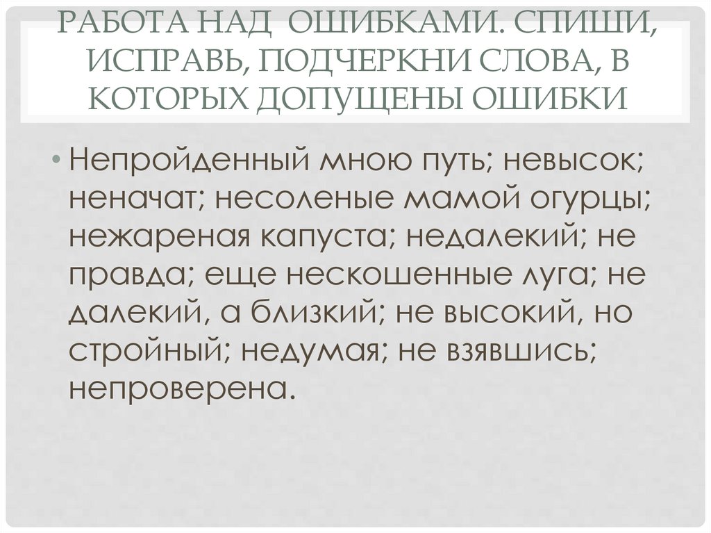 РАБОТА НАД ОШИБКАМИ. СПИШИ,ИСПРАВЬ, ПОДЧЕРКНИ СЛОВА, В