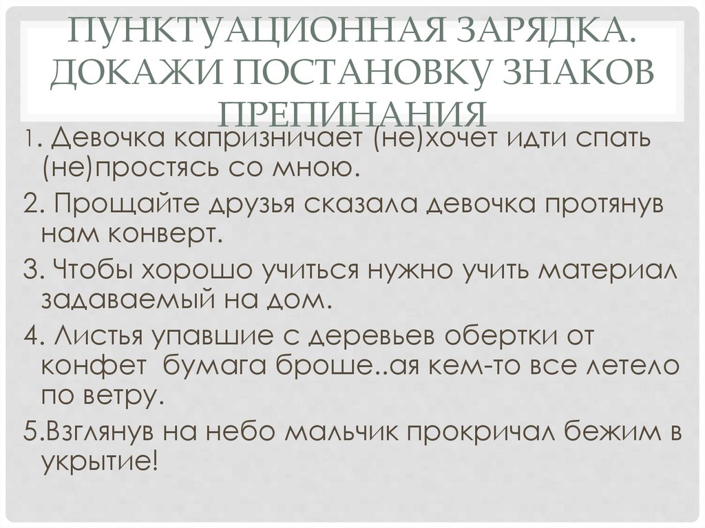 ПУНКТУАЦИОННАЯ ЗАРЯДКА.ДОКАЖИ ПОСТАНОВКУ ЗНАКОВ