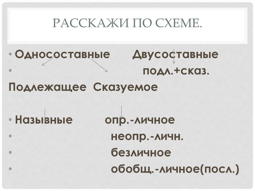 РАССКАЖИ ПО СХЕМЕ.• Односоставные