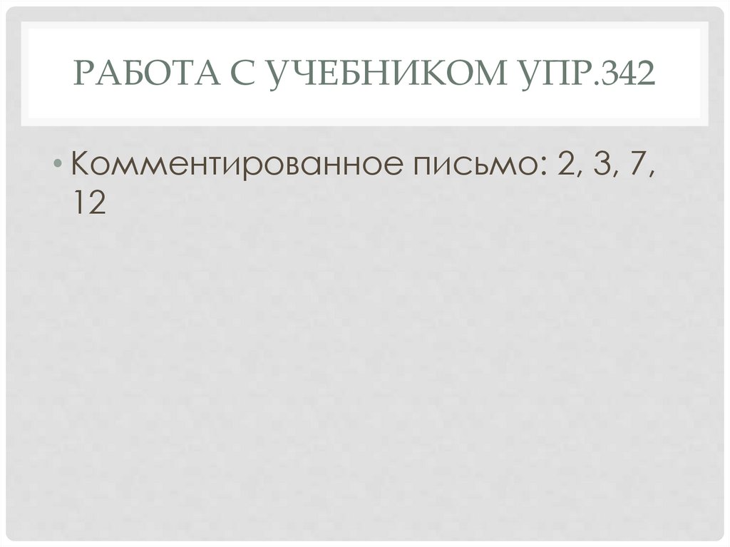 РАБОТА С УЧЕБНИКОМ УПР.342• Комментированное письмо: 2, 3, 7,