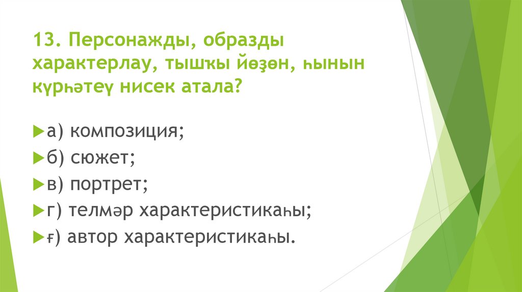 13. Персонажды, образдыхарактерлау, тышҡы йөҙөн, һынын