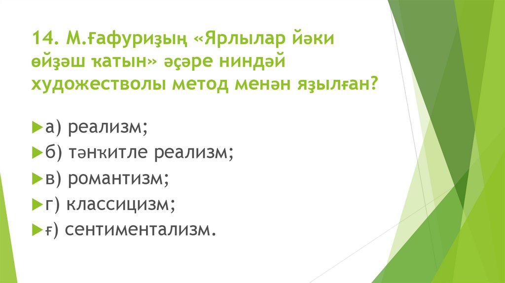 14. М.Ғафуриҙың «Ярлылар йәкиөйҙәш ҡатын» әҫәре ниндәй