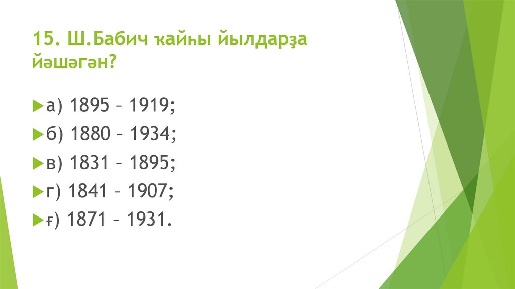 15. Ш.Бабич ҡайһы йылдарҙайәшәгән?