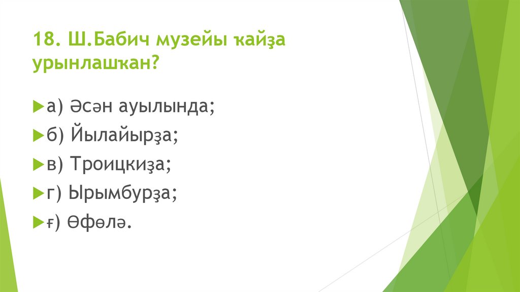 18. Ш.Бабич музейы ҡайҙаурынлашҡан?